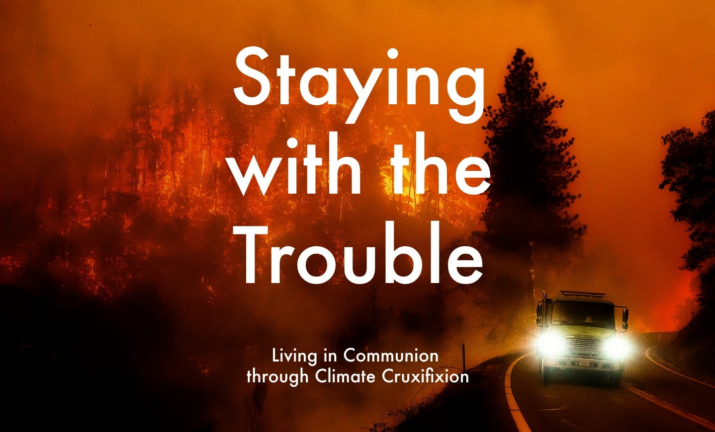 Responding to climate crisis and ongoing human-led destruction of life on our planet, environmental humanities scholar Donna Haraway writes about the practice of “staying with the trouble.” She argues that we must develop ways of living here, in troubled times, that don’t rely on imagined “edenic pasts” or “apocalyptic or salvific futures” that lead to apathy or inaction.1 Instead, we must learn “to be truly present [...] as moral critters” (that’s creatures for those of you who don’t speak the dialect) who are entangled and enmeshed in “unfinished configurations of places, times, matters, meanings.”2 We are always growing, evolving, and being made new in concert, in communion, with the beings and environments who are our co-habitants.